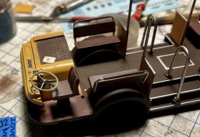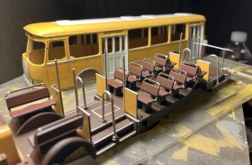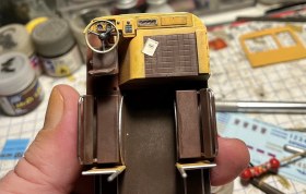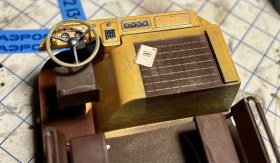 Красил оригинальной автомобильной охрой и белой Тамией, окантовки по стёклам - маркеры Тамия и МонБлан без масок, пигменты ZIP, кабина водителя из авиационных приборов от Embase, в ящик радио запихнул ради прикола тоже немного ненужных приборов. Бортжурнал от Ка-52, огнетушитель от DC-3. Цвета салона мешал из двух Mr.Hobby - коричневого на пол и коричневый с красным на сиденья, кантики рисовал маркером. Для солнцезащитной полосы на лобовухе специально купил х-25. Отрисовка алюминиевых молдингов с чёрной резинкой внутри оказалась не такой уж и страшной, это делал фломастерами TOUCH Opaque 28 silver 0,8мм и Molotov blackliner 0.4мм, просто по гибкой офицерке. Окна вклеивал на Micro Krisral Klear, хотя можно и капать Космофеном на лапки, если бы не здоровенные щели между стеклом и кузовом. При очистке стёкол от пыли фланелевой тряпочкой от очков, они наэлектризовались ТАК, что стали притягивать из воздуха всё, чем я дышу))) Иногда кажется, что они притянули бы и кота... Остатки пыли честно клинапил, разрядить статику невозможно ни батареей, ни водопроводным краном - через пять минут опять появляется несколько пылинок. Вот с таким я впервые столкнулся, надо было тереть рейбеновской замшей)))