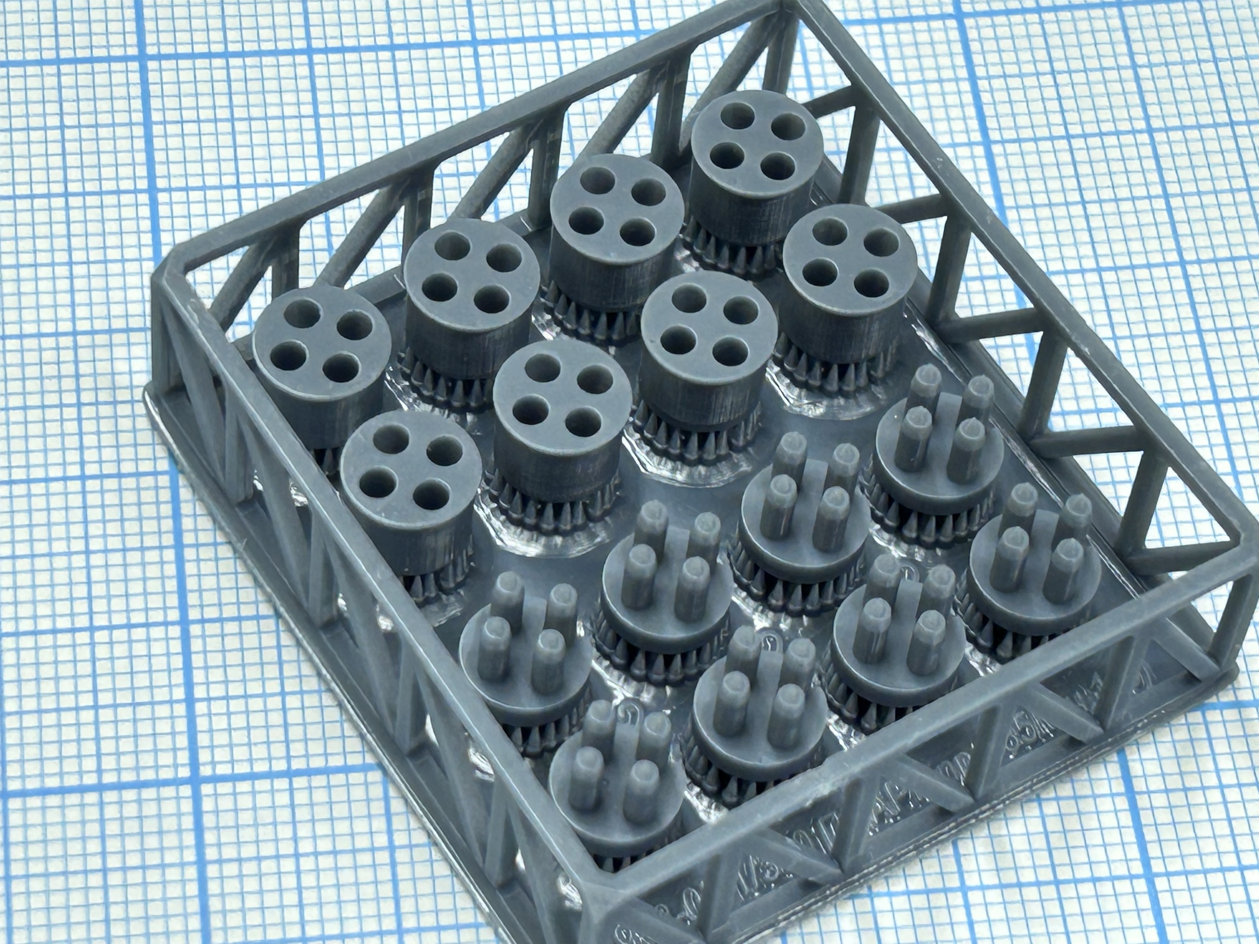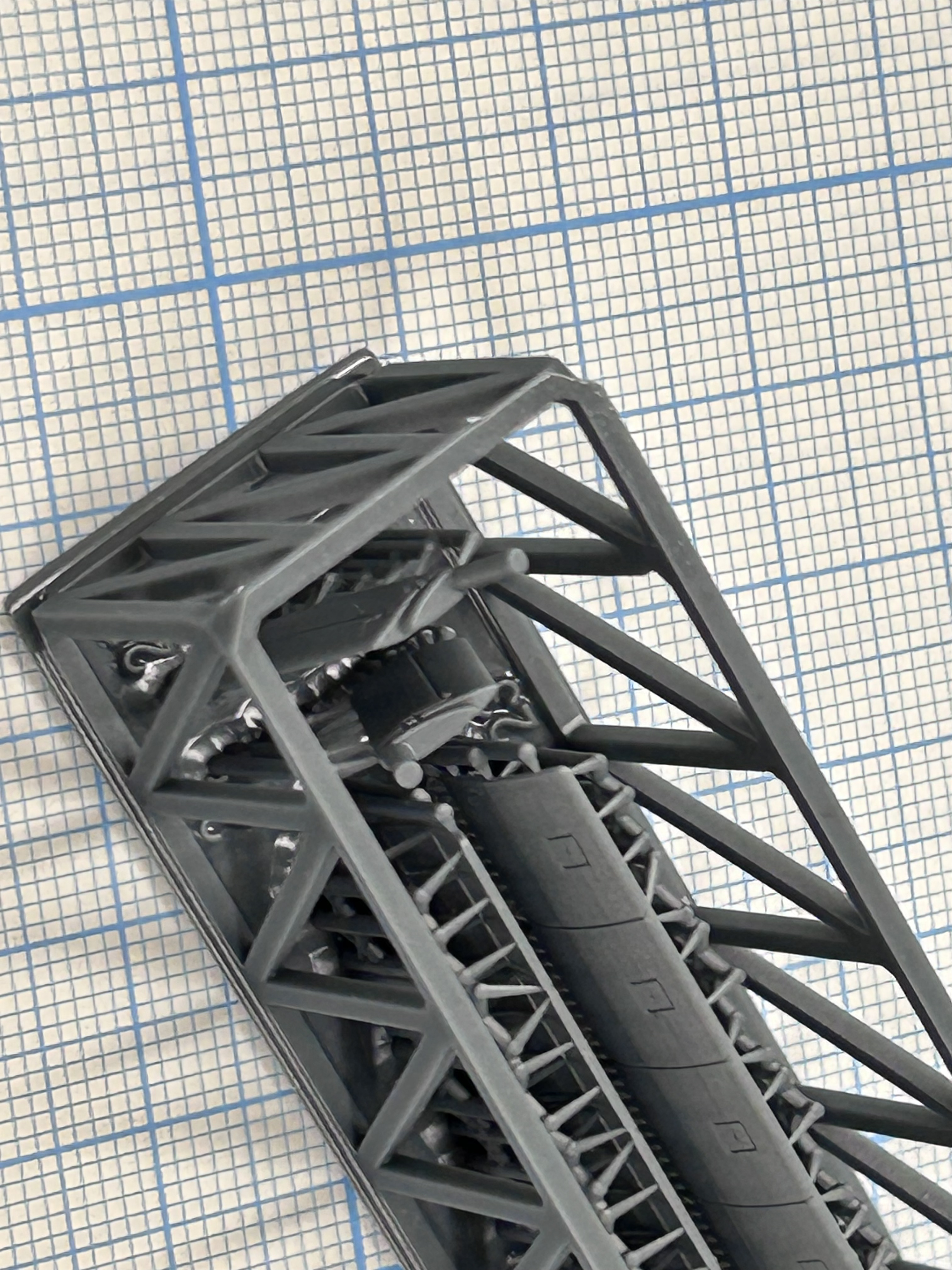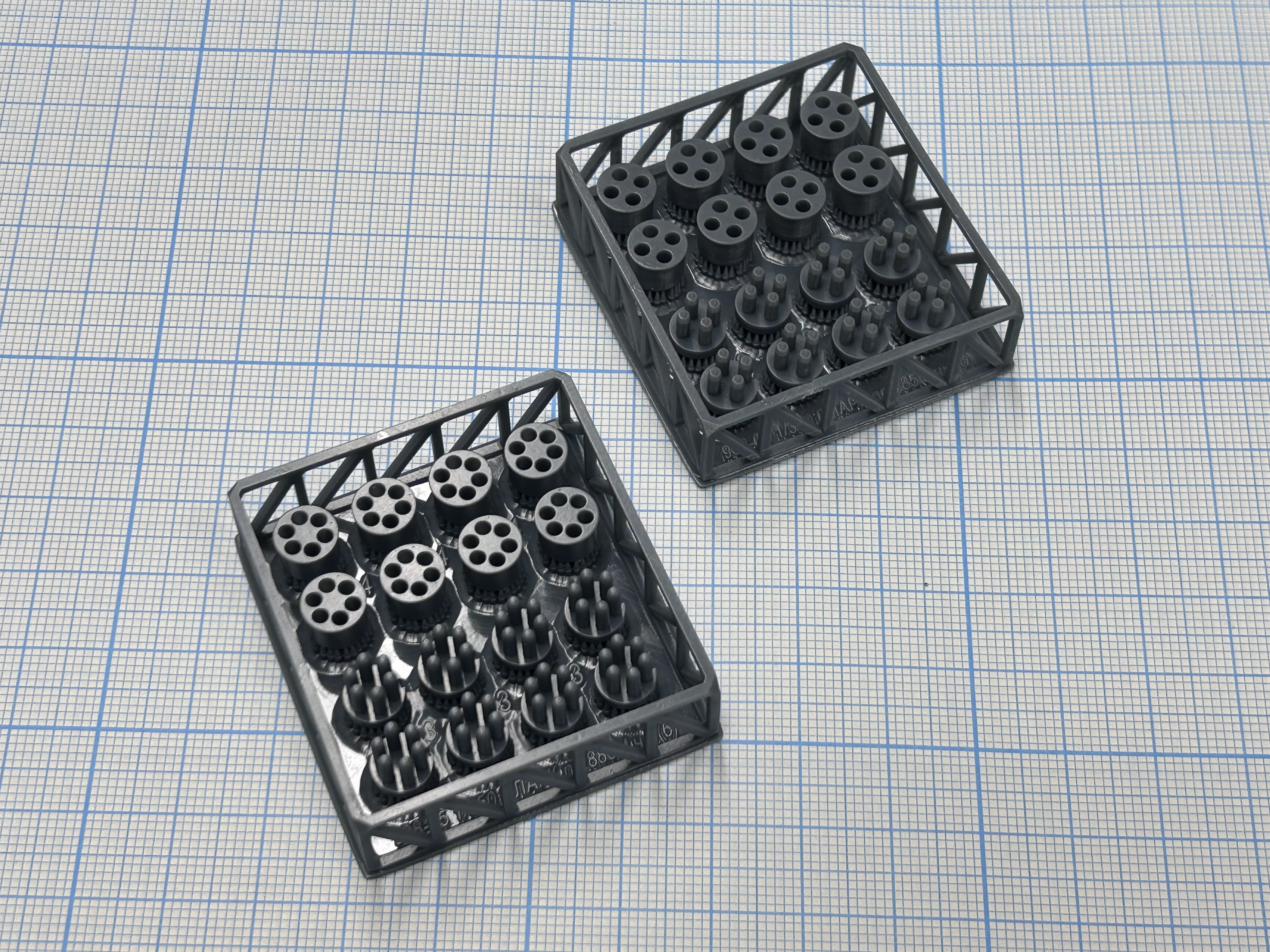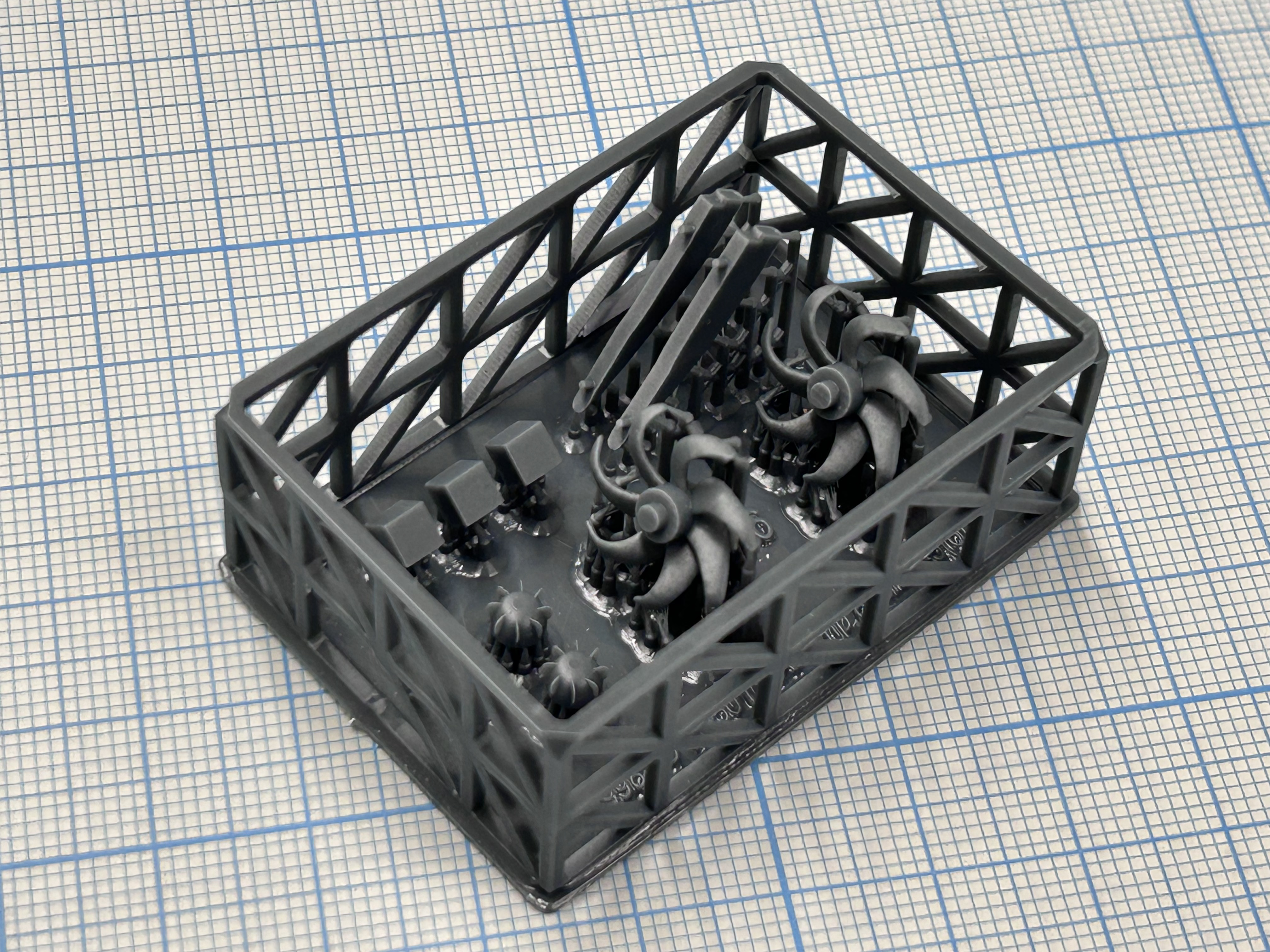 По традиции модели подводных лодок этого производителя напечатаны на фотополимерном принтере из специальной фотополимерной смолы. Основные детали из смолы серого цвета, а корпус из черного. Не знаю точно на марки смол, но есть небольшое подозрение, что механические свойства у них могут быть разные (при работе станет яснее).