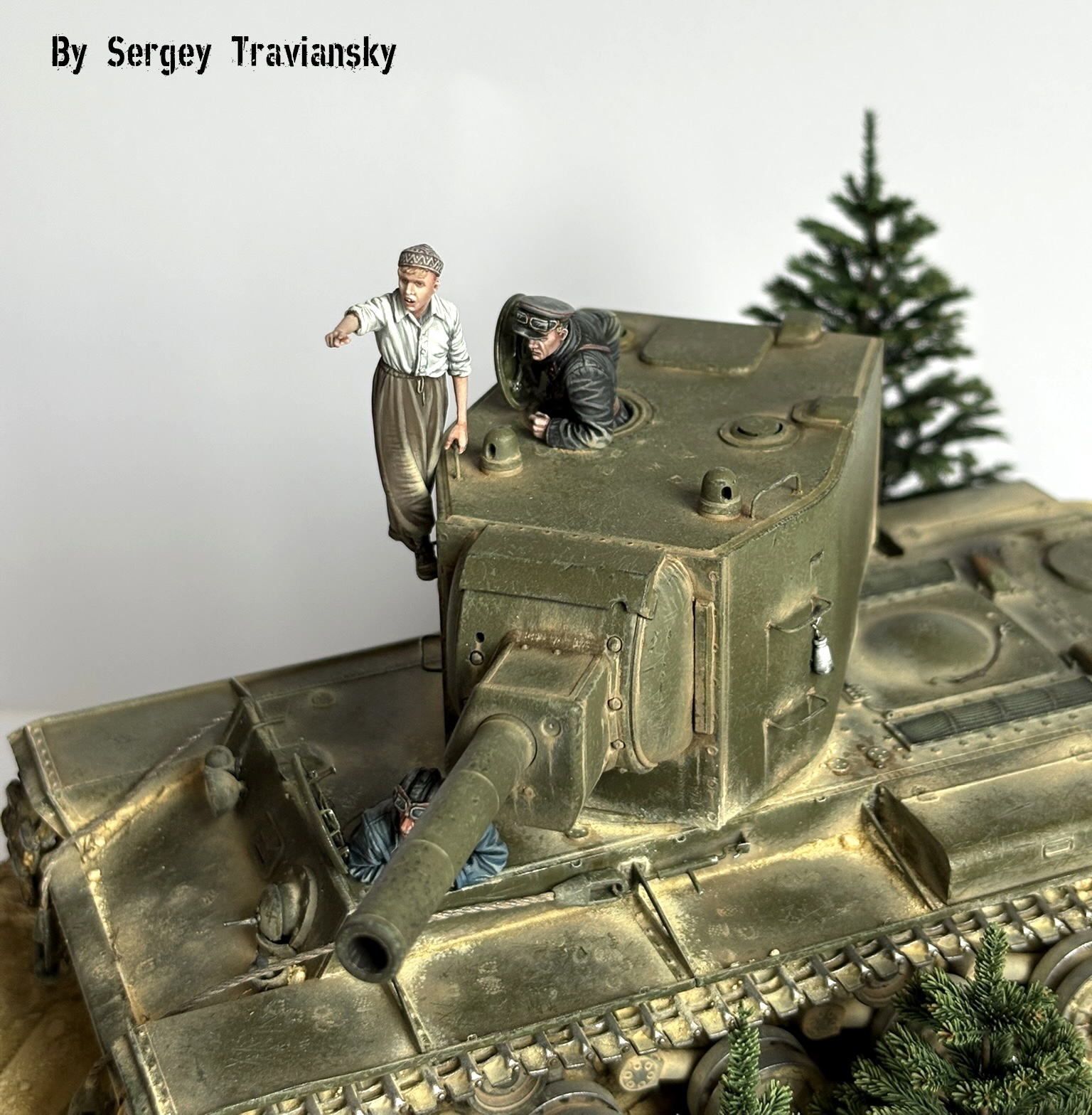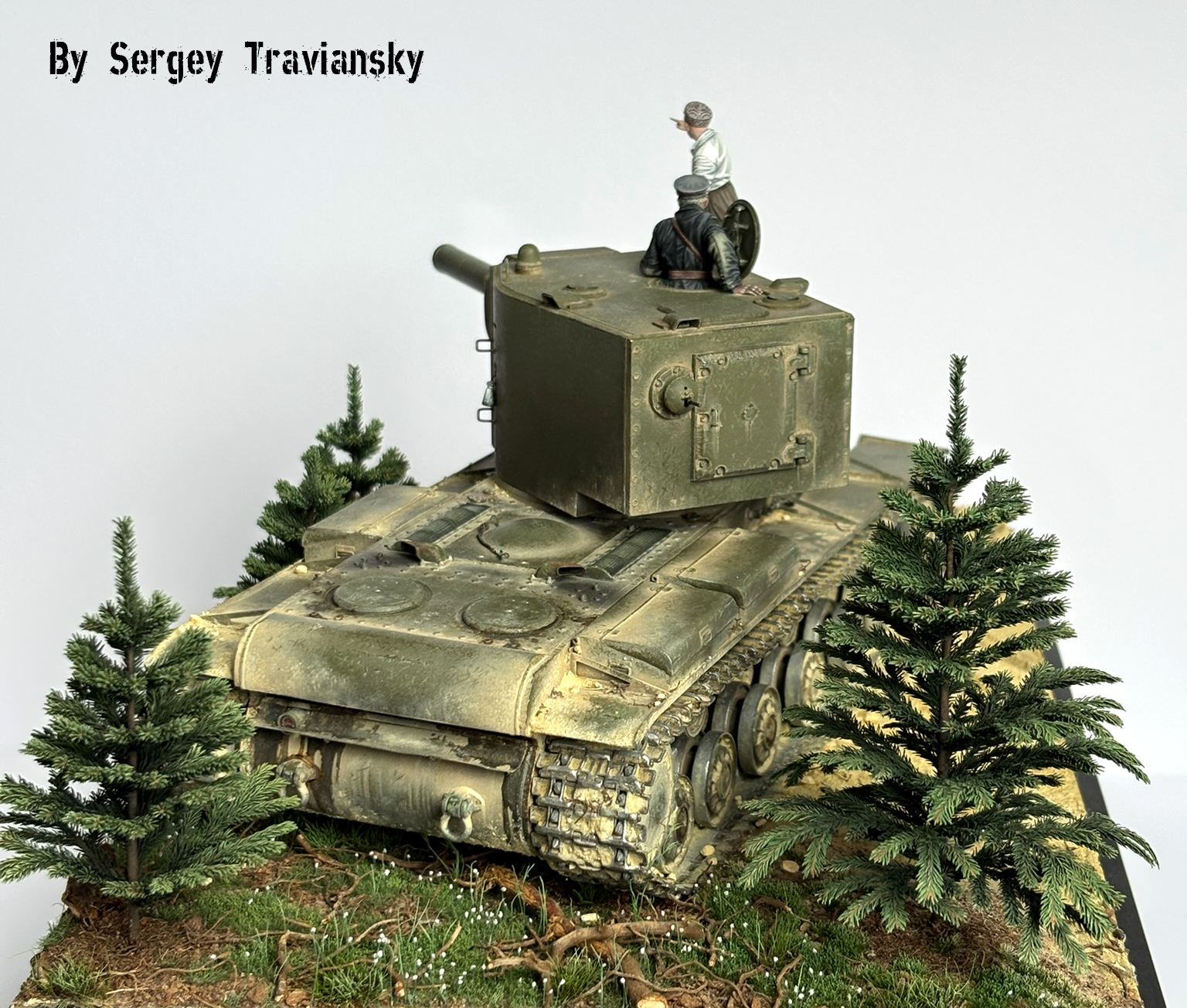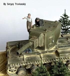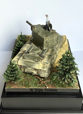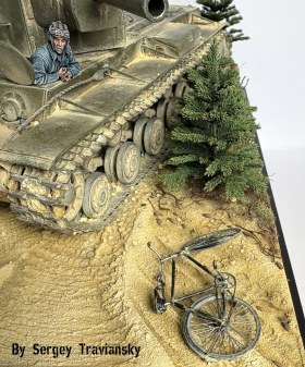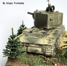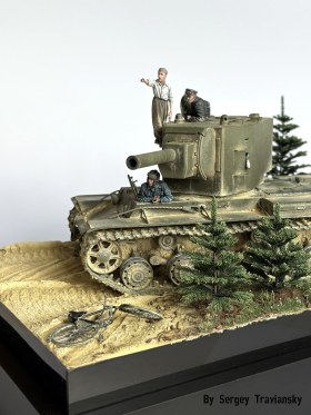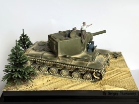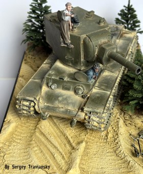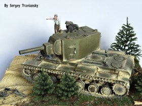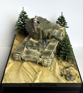 По работе...КВ-2 тамиевский с не большими доработками, фигурки Evolution, елки Crow-Studio,велик от КуперСтейт, но с некоторыми доработками. Окрашивалось все валеховским акрилом.