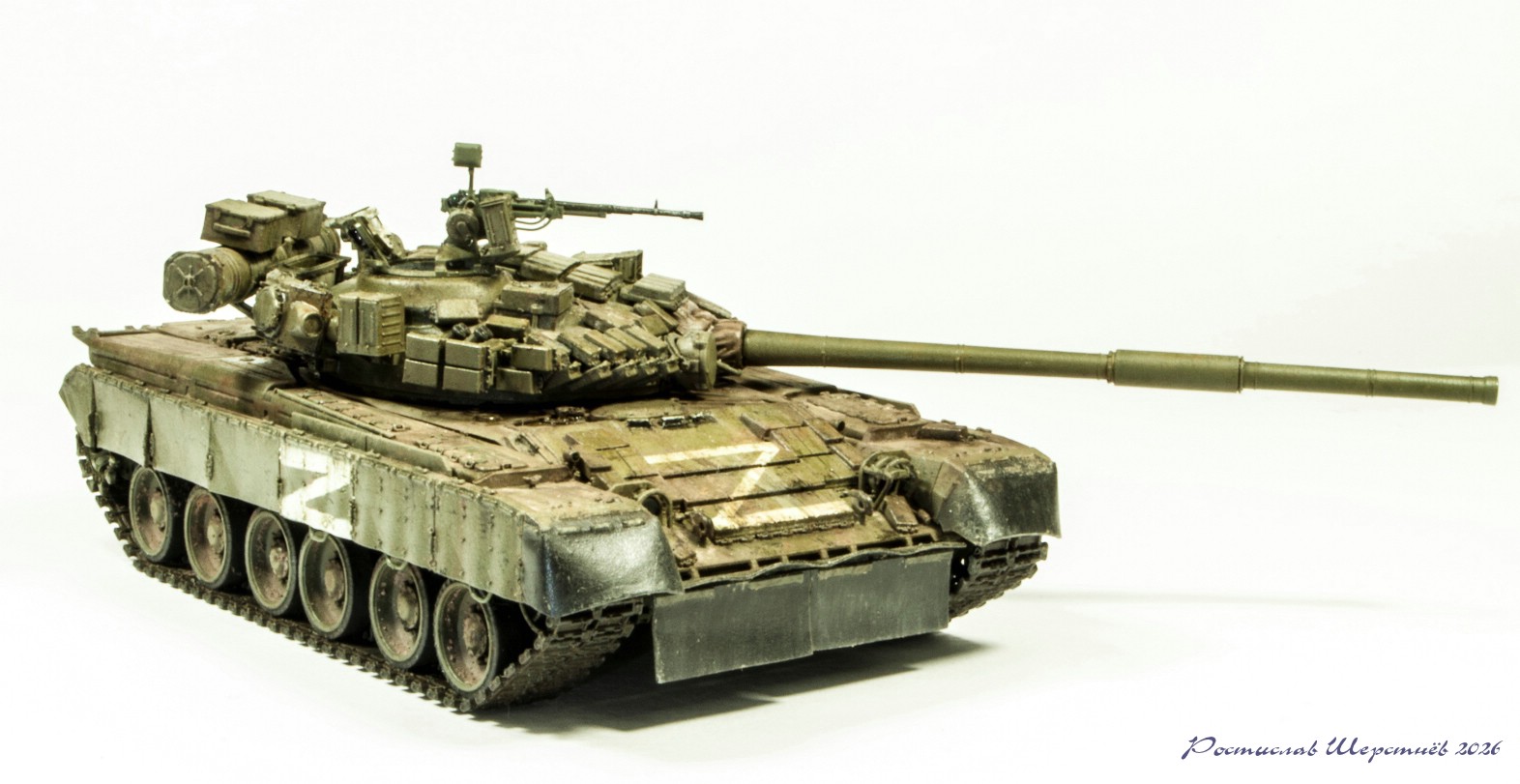Родные декали ставить не стал, поскольку они были напечатаны с ошибками. Решил накрасить через трафареты буквы Z. И сделать некий собирательный образ активно воюющей на СВО машины.