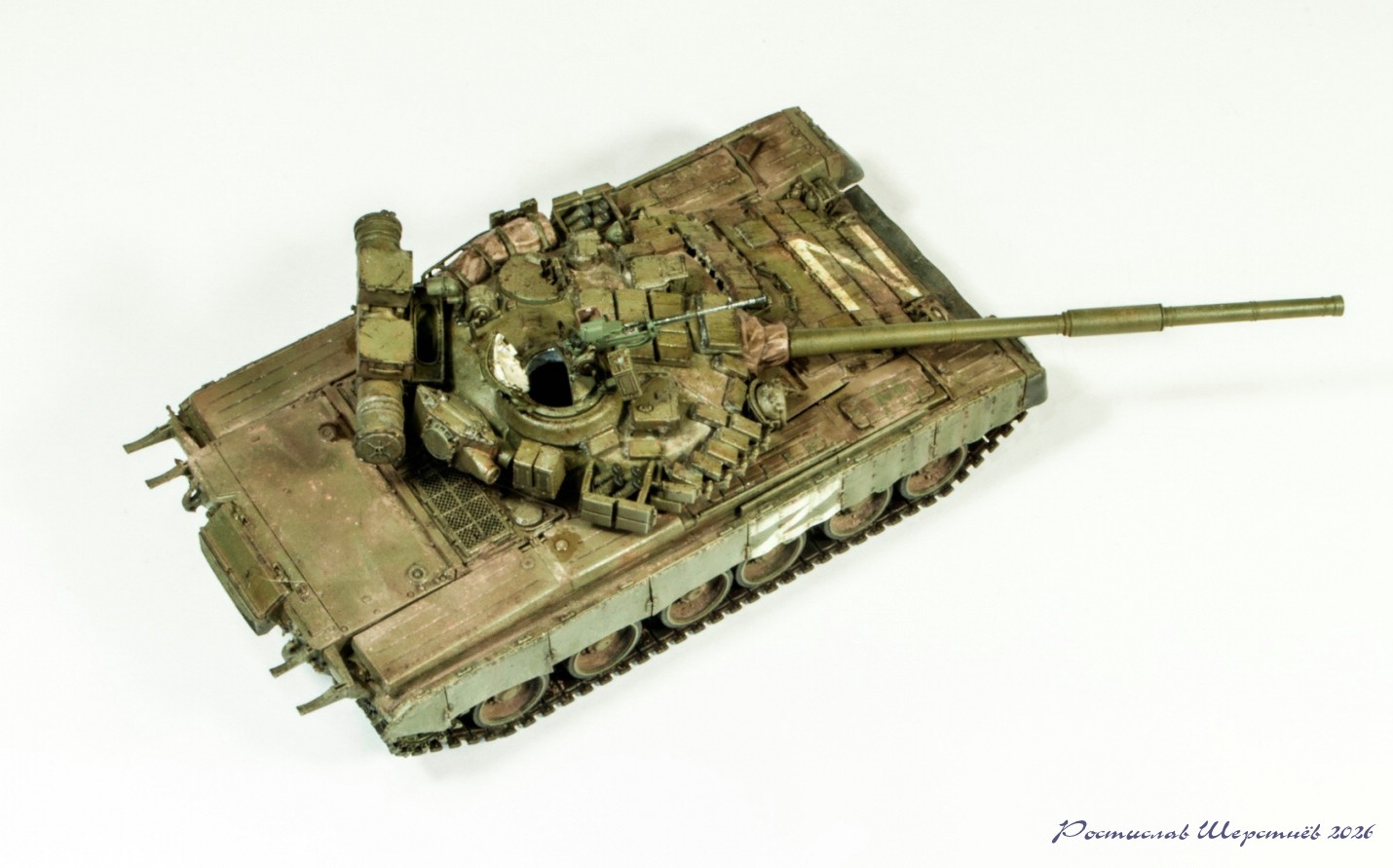 Это печатная модель от китайской фирмы Turbo Studio. Для тех, кто не в курсе, на текущий момент (апрель 2026 года) продукция этой фирмы может конкурировать по качеству печати, точности и деталировке только с другим китайским брендом "Camel Model". При этом стоит несколько дешевле. И ассортимент у них отличается. Turbo начал серию наших танков с линейки Т-80, а Camel с Т-72.