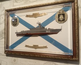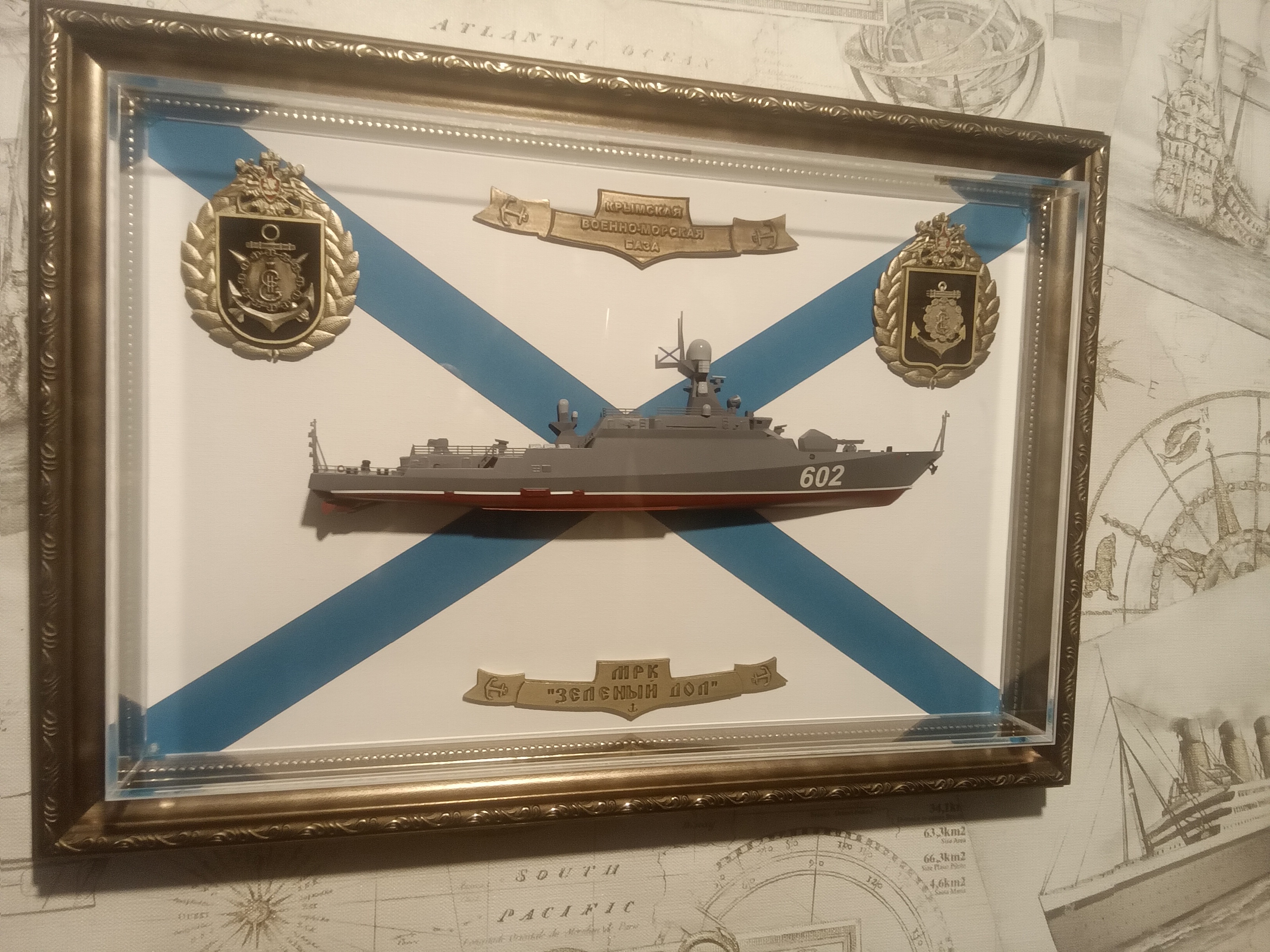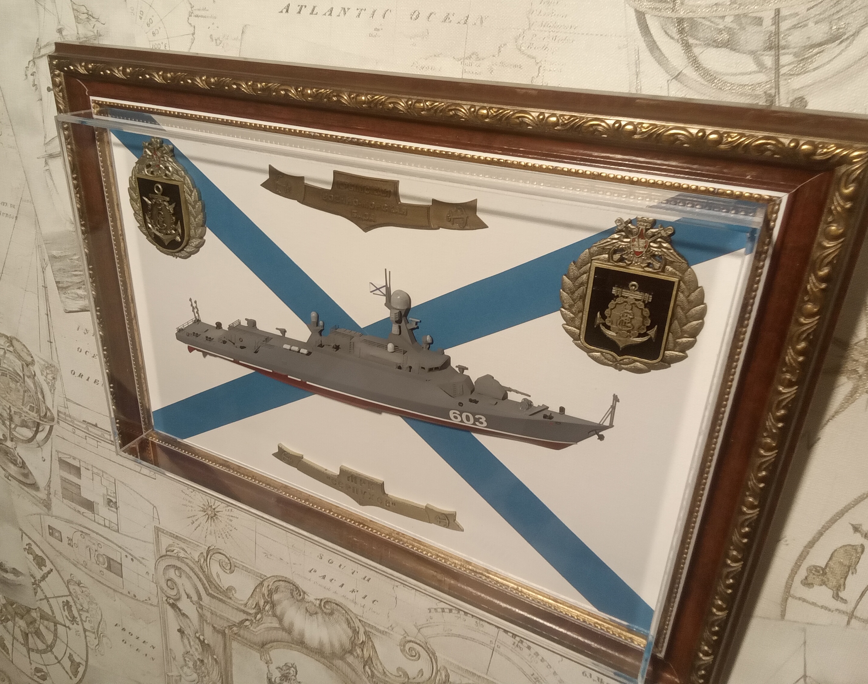 Новые технологии приходят в гости к нам. На фоне удорожания производства панно из латуни, пришел к заключению, а почему бы не воспользоваться современными технологиями? И вот как итог появилась серия маленьких полумоделей малых ракетных кораблейв виде панно с застекленной витриной от пыли.