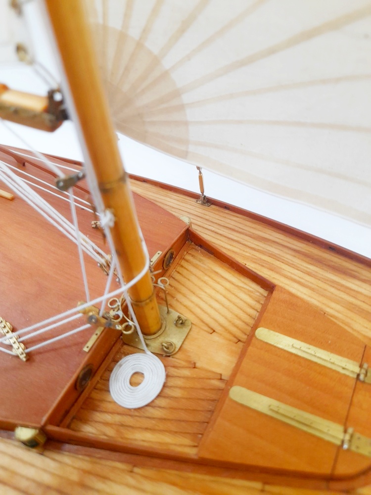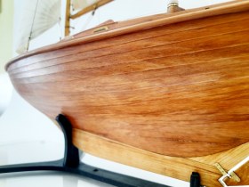 Очень яхта понравилась!!! Классная работа! Оснастка супер!!!! Паруса с "карманами", и с юферсами и даже заложены вкладыши под риф-банты!! Замечательная работа по "латуньке"!!! Мои поздравления!