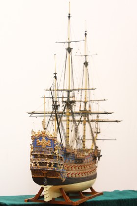 104-пушечный корабль "Le Soleil Royal" ("Король-Солнце") был заложен на верфях в Бресте корабельным мастером Лораном Хубаком в 1668 году и в 1669 году вошел в состав французского флота. 20 лет стоял без использования, но в 1688 году, с началом войны Аугсбургской лиги, был довооружен, классифицирован как 112-пушечный корабль и принял участие в войне. Участвовал в сражениях при Бичи-Хед и при Барфлёре. В сражении при Барфлере (29 мая 1692 года) был сильно поврежден и высажен на мель у Шербура для ремонта. В ночь со 2 на 3 июня сожжен английскими брандерами.