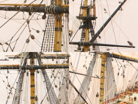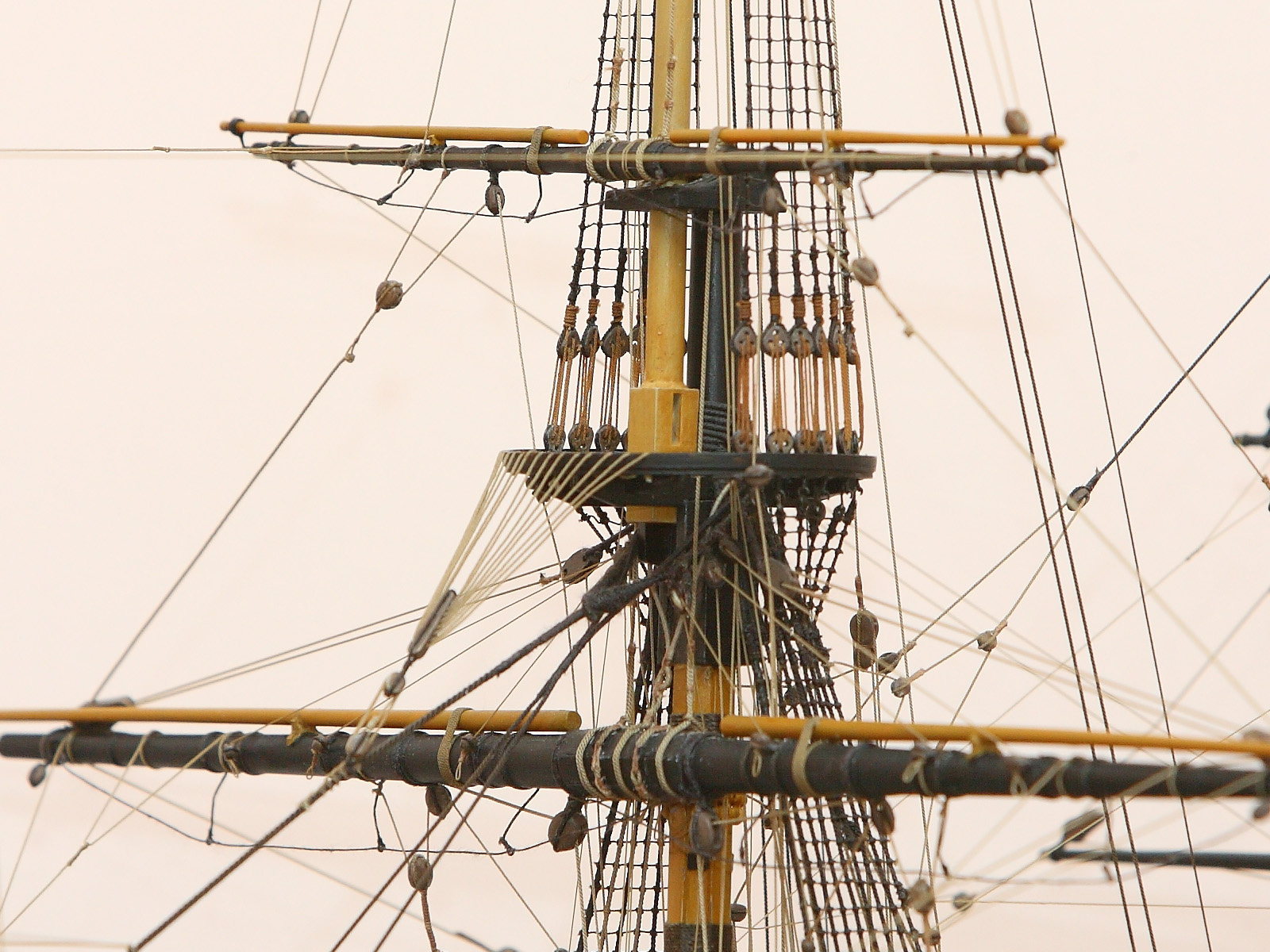 Кроме нагелей самодельные все блоки (отлиты из смолы в силиконовые формы по своим мастер-моделям) и канаты (навиты на самодельном просаке из расплетенных ниток "Гуттерман" и "Моснитки").